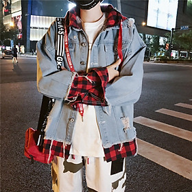 ✨Áo khoác jean phối nón sọc caro Mã: NK1512 - XANH NHẠT