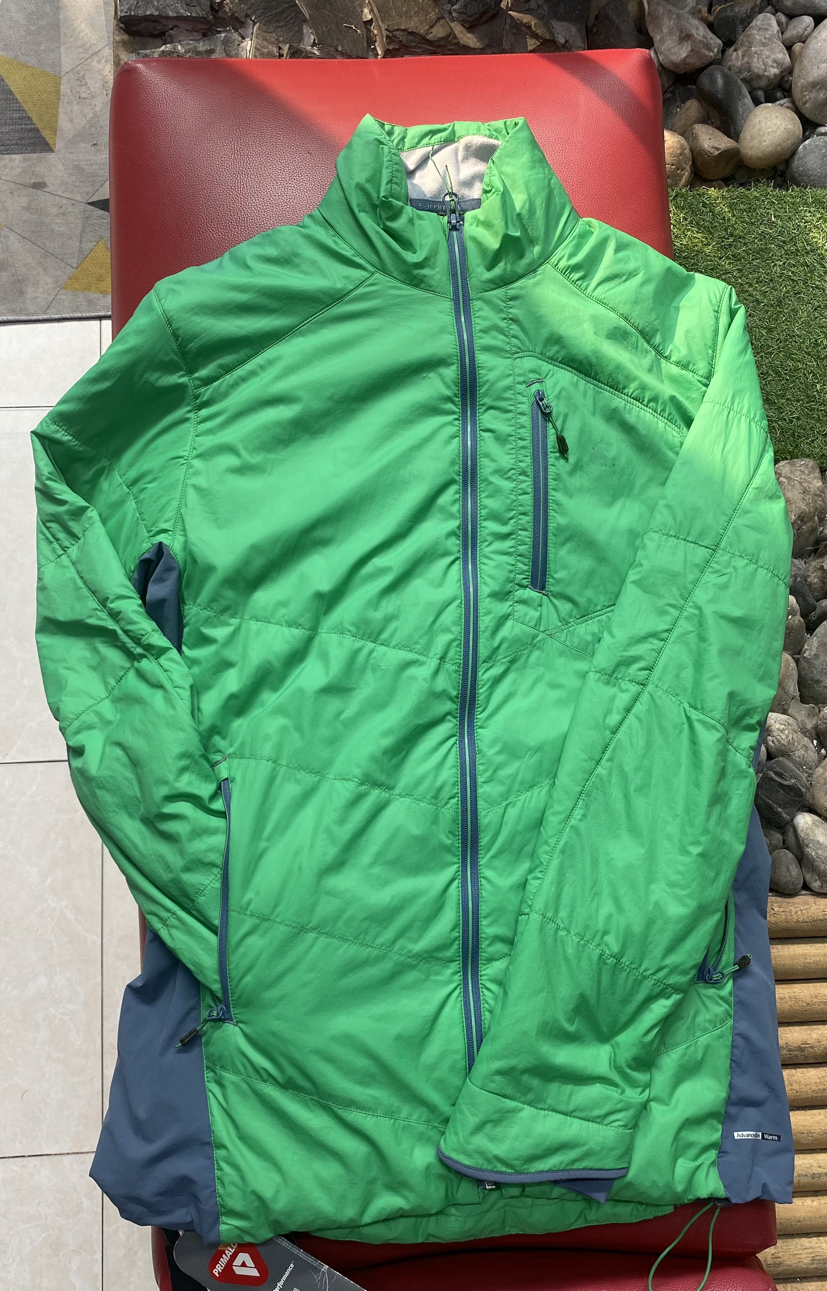 Chất liệu rất nhẹ, cách nhiệt hoàn hảo và chống gió làm cho chiếc áo khoác này cũng như một chiếc áo khoác độc lập, được mặc trong thời tiết khô ráo hoặc như một lớp cách nhiệt tuyệt vời được sử dụng bên dưới áo khoác ngoài "schell". Hoàn hảo như một lớp thứ hai để trượt tuyết trong thời tiết lạnh hoặc như một chiếc áo khoác để sử dụng hàng ngày. Áo có 2 túi zip 2 bên + túi logo ngực trái. Ngoài ra, còn có nếp gấp ở hông. Hai bên hông áo được làm bằng chất liệu co giãn để ôm sát cơ thể hơn. Bộ này bao gồm một chiếc túi để bạn có thể đóng gói áo khoác cuộn lại. Khi gấp lại, nó chiếm rất ít không gian.