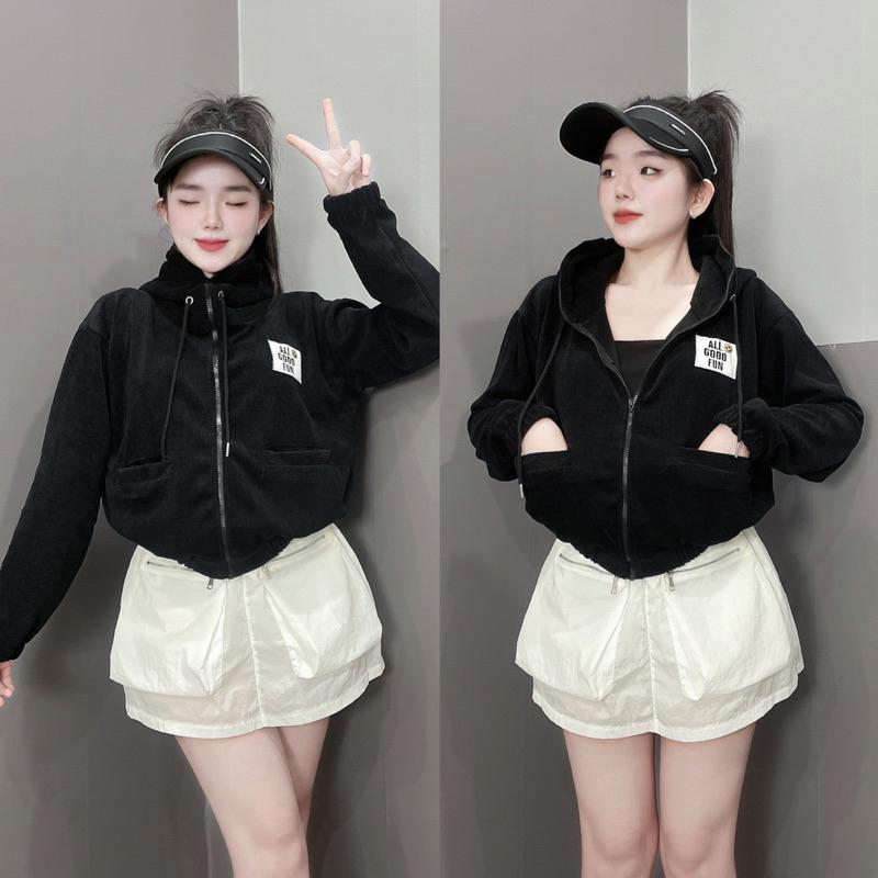 Áo khoác nữ nỉ chống nắng Croptop 3 Sọc Dáng Rộng Mũ To 3 sọc là sự lựa chọn hoàn hảo cho các cô gái yêu thích phong cách thời trang năng động và cá
