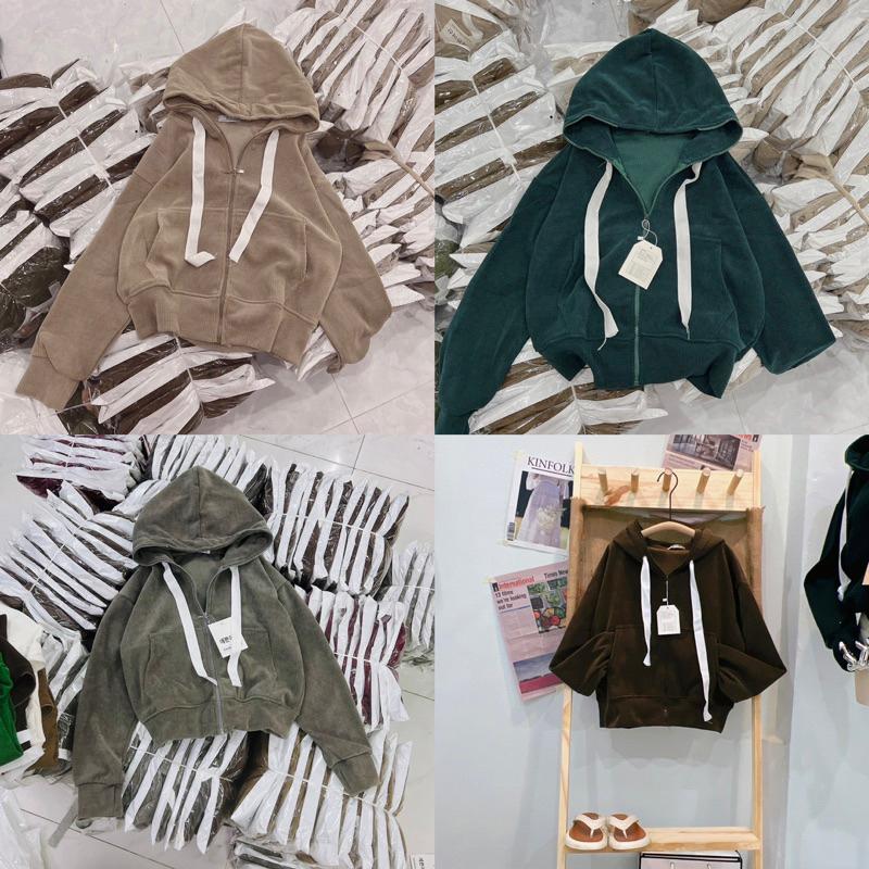 ✨Áo khoát nữ nhung nhung gân trơn 4 túi nhiều màu hàng đẹp dễ thương-A2054