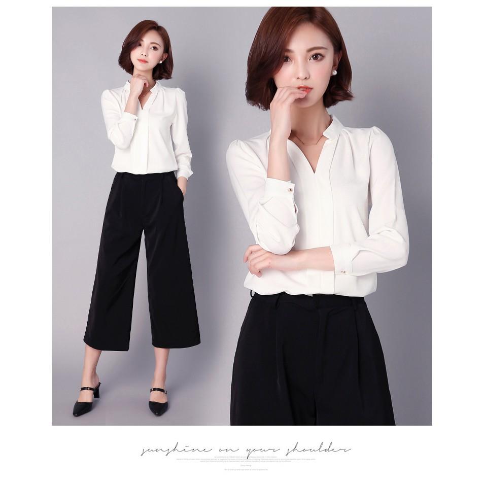 ✨Áo kiểu cổ V dài tay màu trắng công sở form rộng đủ size sm55