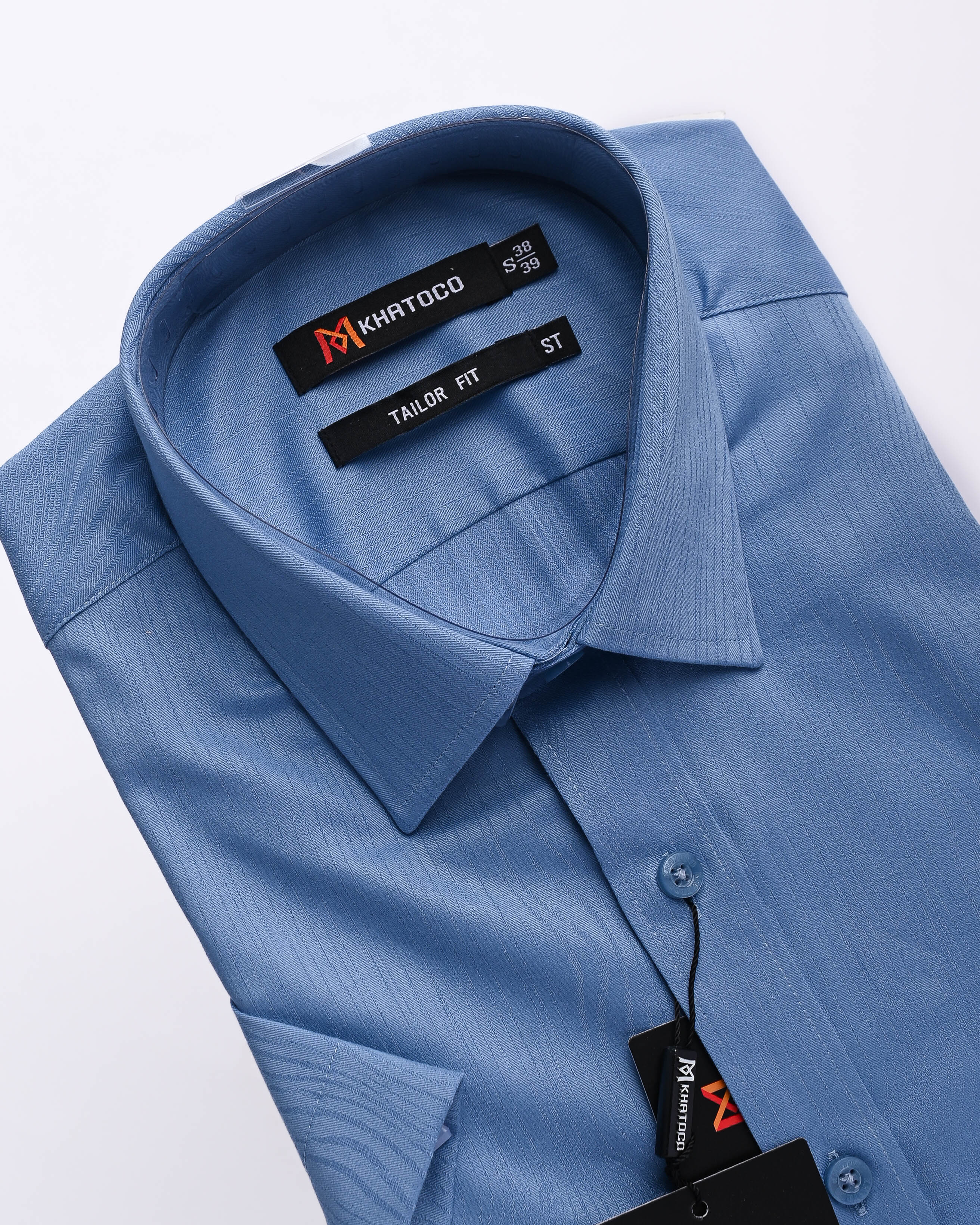 Áo sơ mi nam tay ngắn lai ngang – Khatoco - Mã hàng: A1MN538T2 - Chất liệu: 75% Polyester + 22% Viscose (Bamboo) + 3% Spandex → Vải mềm mại, thoáng mát, co giãn nhẹ,