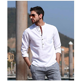 Áo sơ mi nam cổ tàu. chất liệu chống nhăn