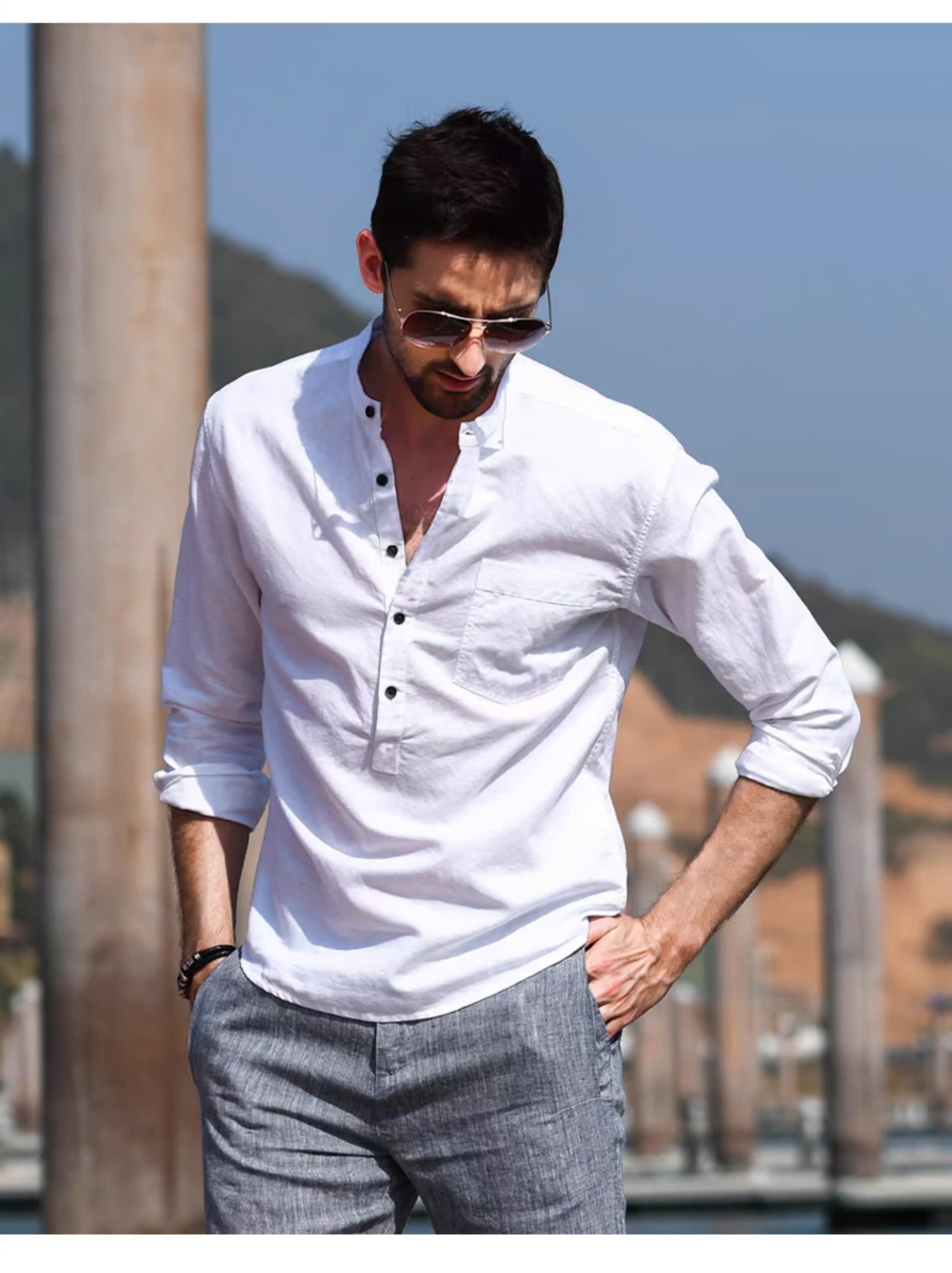 ✨Áo sơ mi nam cổ tàu thiết kế tày dài thích hợp mặc mùa nhè, mùa thu với chất liệu mềm mịn mướt