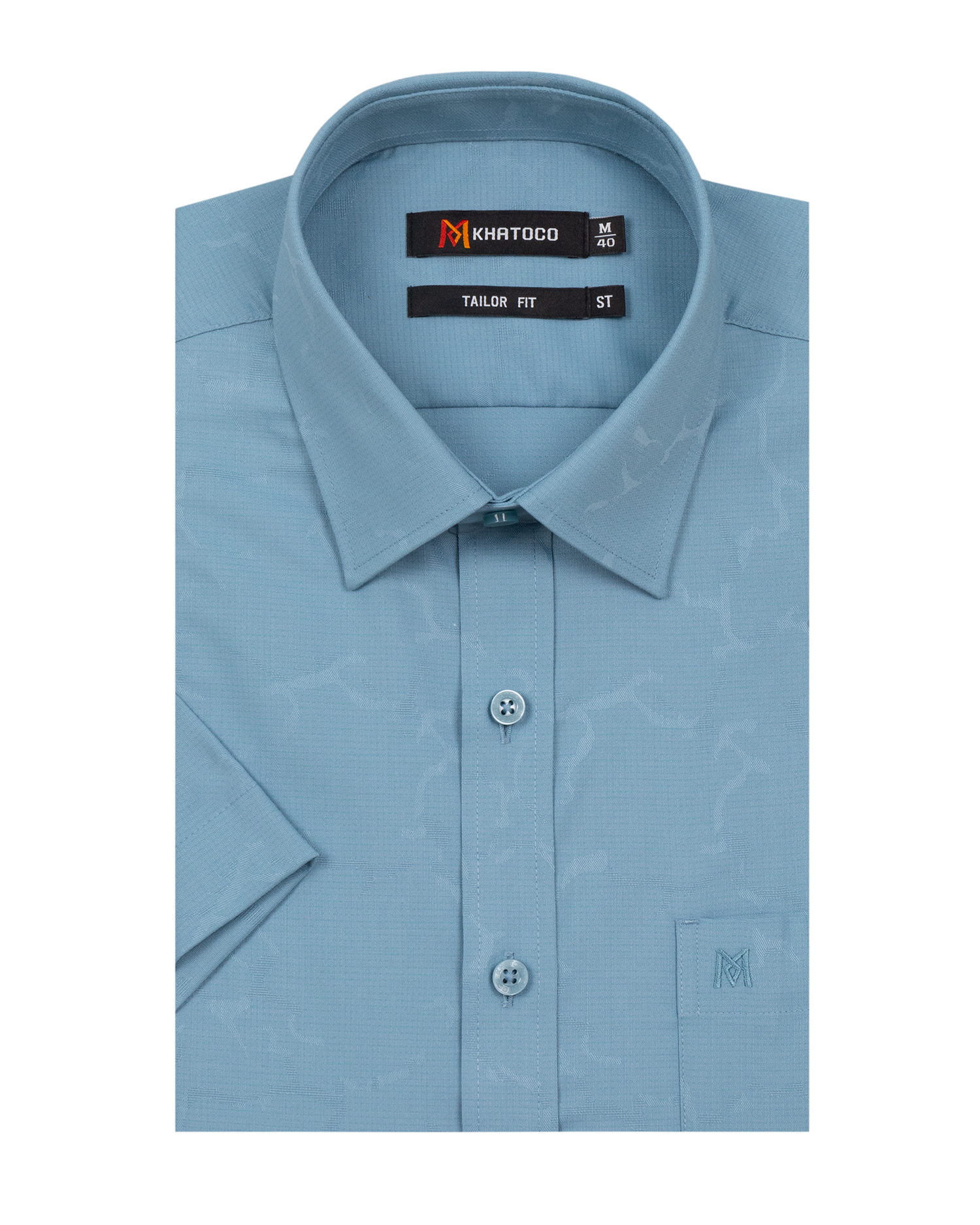 Áo sơ mi nam tay ngắn lai ngang – Khatoco - Mã hàng: A1MN538T2 - Chất liệu: 75% Polyester + 22% Viscose (Bamboo) + 3% Spandex → Vải mềm mại, thoáng mát, co giãn nhẹ,
