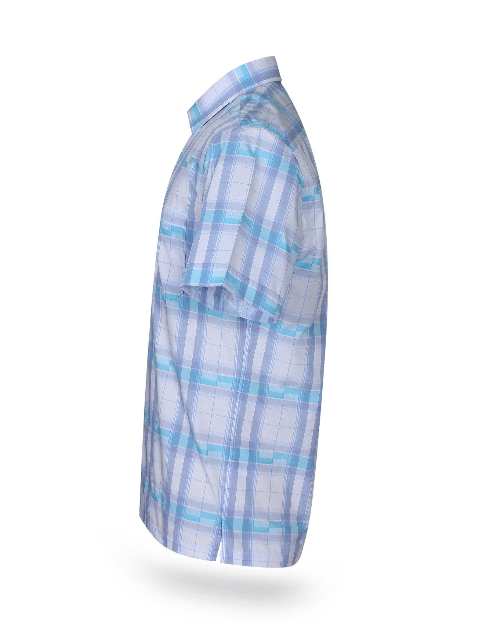 Áo sơ mi nam tay ngắn lai ngang – Khatoco - Mã hàng: A1MN538T2 - Chất liệu: 75% Polyester + 22% Viscose (Bamboo) + 3% Spandex → Vải mềm mại, thoáng mát, co giãn nhẹ,