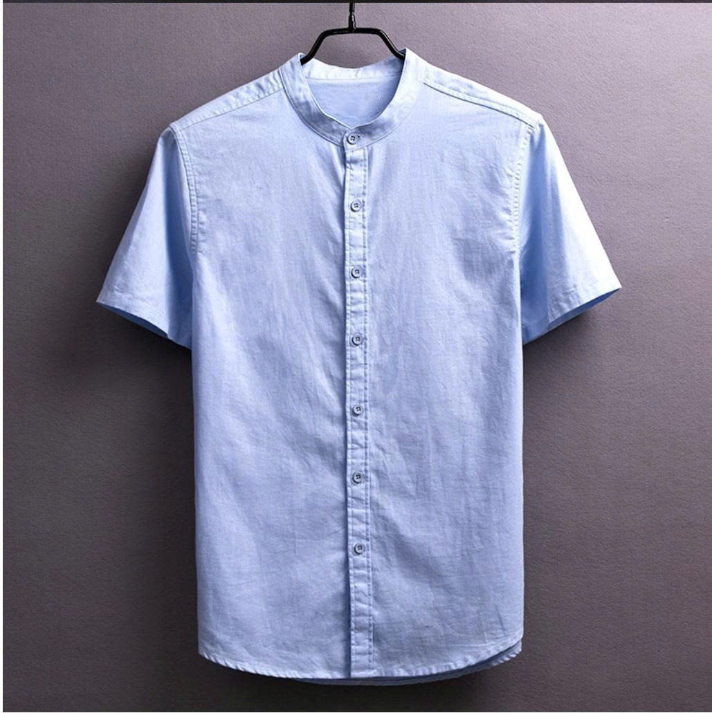 ✨áo sơ mi nam ngắn tay cổ trụ thiết kế trơn dễ phối đồ sang chảnh, thanh lịch