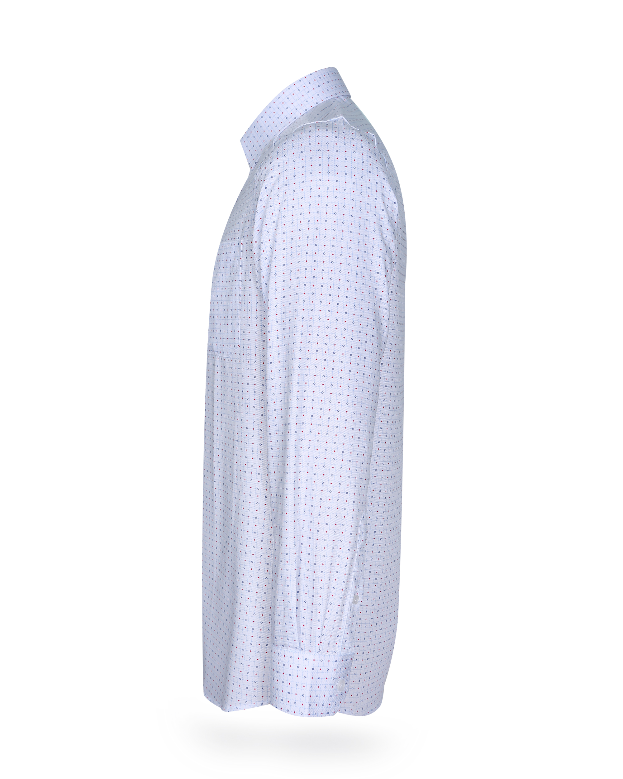 (V) MÔ TẢ: Form Taylor, tai dài Form áo tiêu chuẩn với form áo rộng vừa phải, không ôm sát cơ thể, bó nhẹ ở vùng eo và tay áo. Độ rộng vùng ngực và nách cũng sẽ fit hơn với cơ thể. Không quá rộng như form áo cổ điển. Màu vải nhã nhặn và trung tính dễ dàng phối trang phục tạo sự lịch lãm, nam tính Nút ton-sur-ton khắc logo đẹp mắt phối trọn vẹn màu áo. Logo thêu sắc nét trên túi áo. Chất liệu:50%POLYESTER- 24%COTTON-2%SPANDEX- 24%VISCOSE(BAMBOO) |Mềm mịn|Thấm hút |Kháng khuẩn|Độ thoáng khí cao|Chống tia UV|Chống nhăn|Chống co rút |Nhanh khô|Dễ vệ sinh làm sạch|Đứng phom áo Màu sắc : Màu Xanh họa tiết