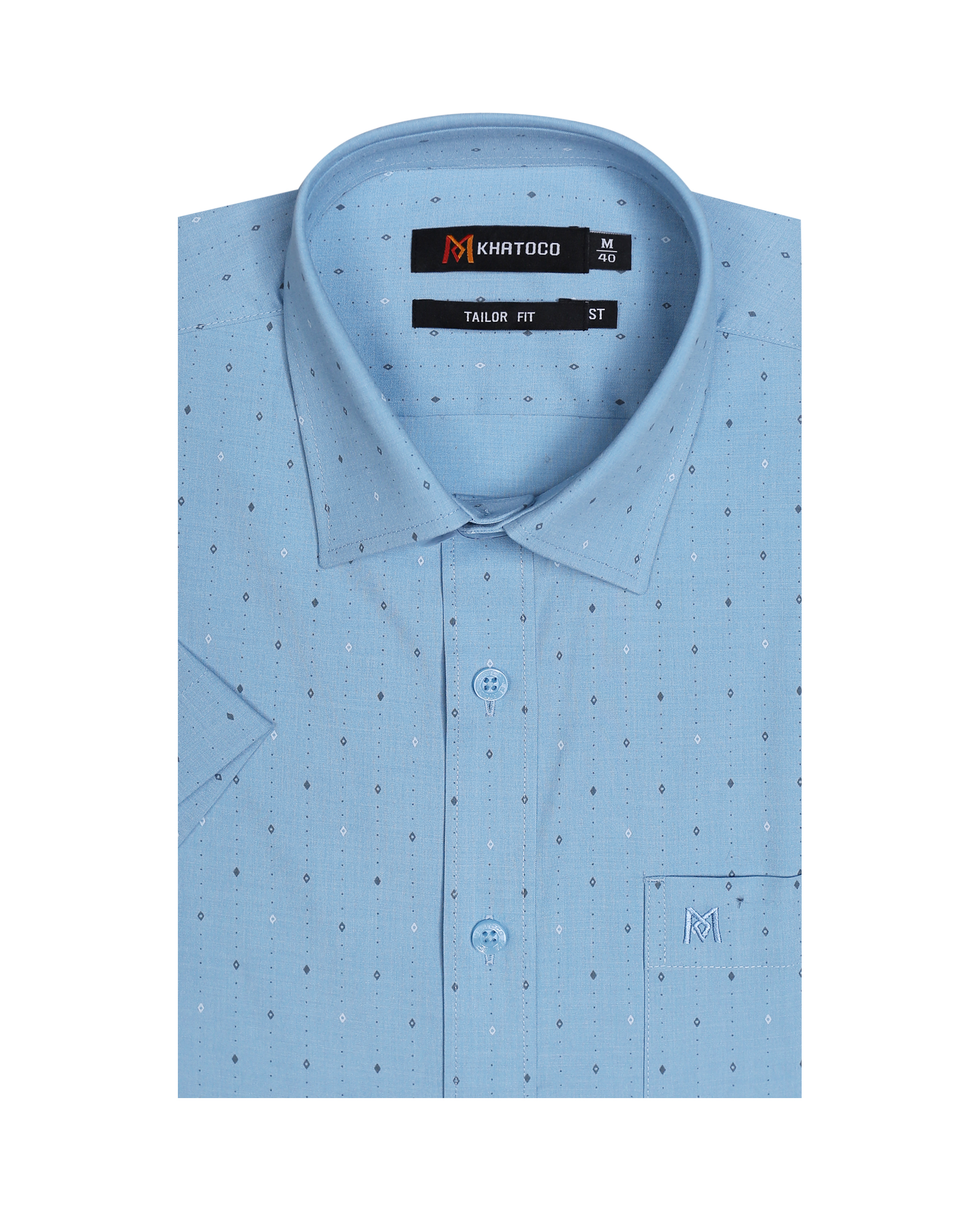 Áo sơ mi ngắn nam tay Khatoco  Áo Sơ Mi Nam Cộc Tay Aligro ALGS-C42 - Xanh Da Trời