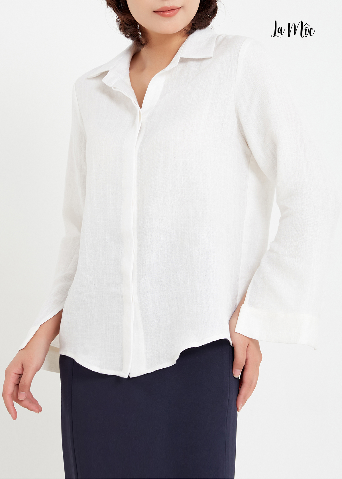 Áo sơ mi nữ Linen tay dài, không túi LA MỘC - LM0122306 - Sơ mi trắng với thiết kế cơ bản và dễ mặc. Điểm nhấn là phần xẻ tay tạo có thể thả