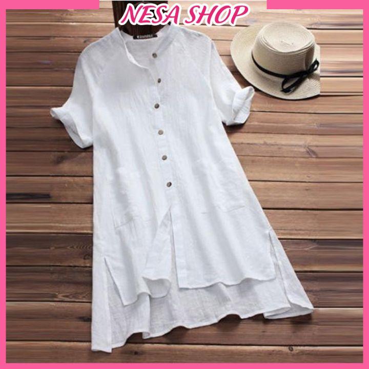 ✨Áo sơ mi váy dáng dài, chất liệu đũi mềm mịn, áo váy nữ, form dài rộng kiểu Hàn Quốc, NeSa Shop AKH.35