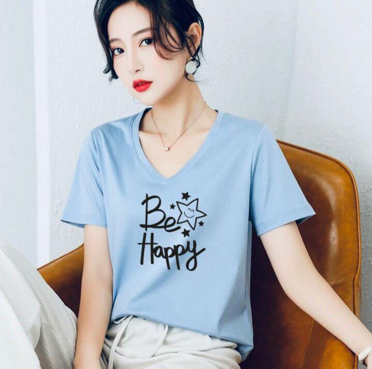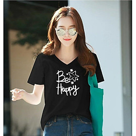 ✨Áo thun nữ cổ tim form rộng MXM in chữ Be Happy cực dễ thương thun 4 chiều từ 45-60kg ( ANU063 )