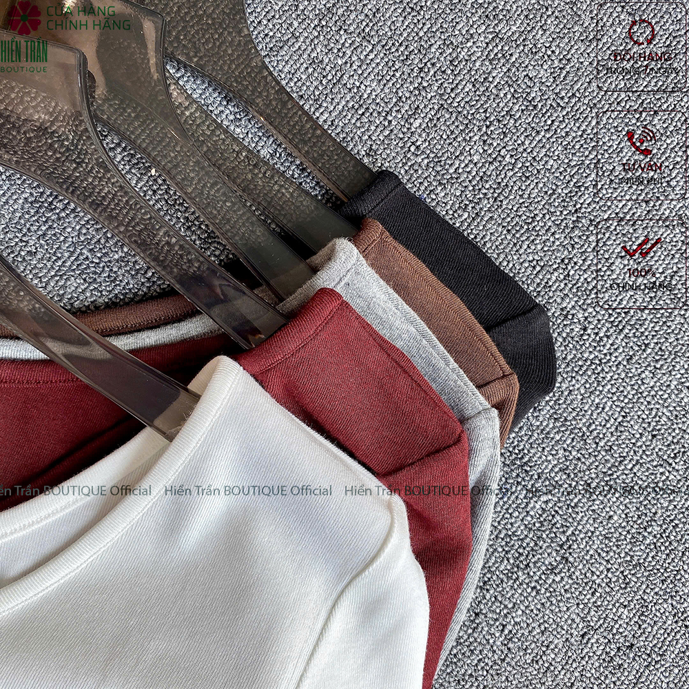Áo thun nữ cổ tim Hiền Trần BOUTIQUE dài tay dáng lỡ crop mặc thu đông chất cotton co giãn là item thời trang phù hợp cho mùa đông và thu. - Chất liệu: Cotton