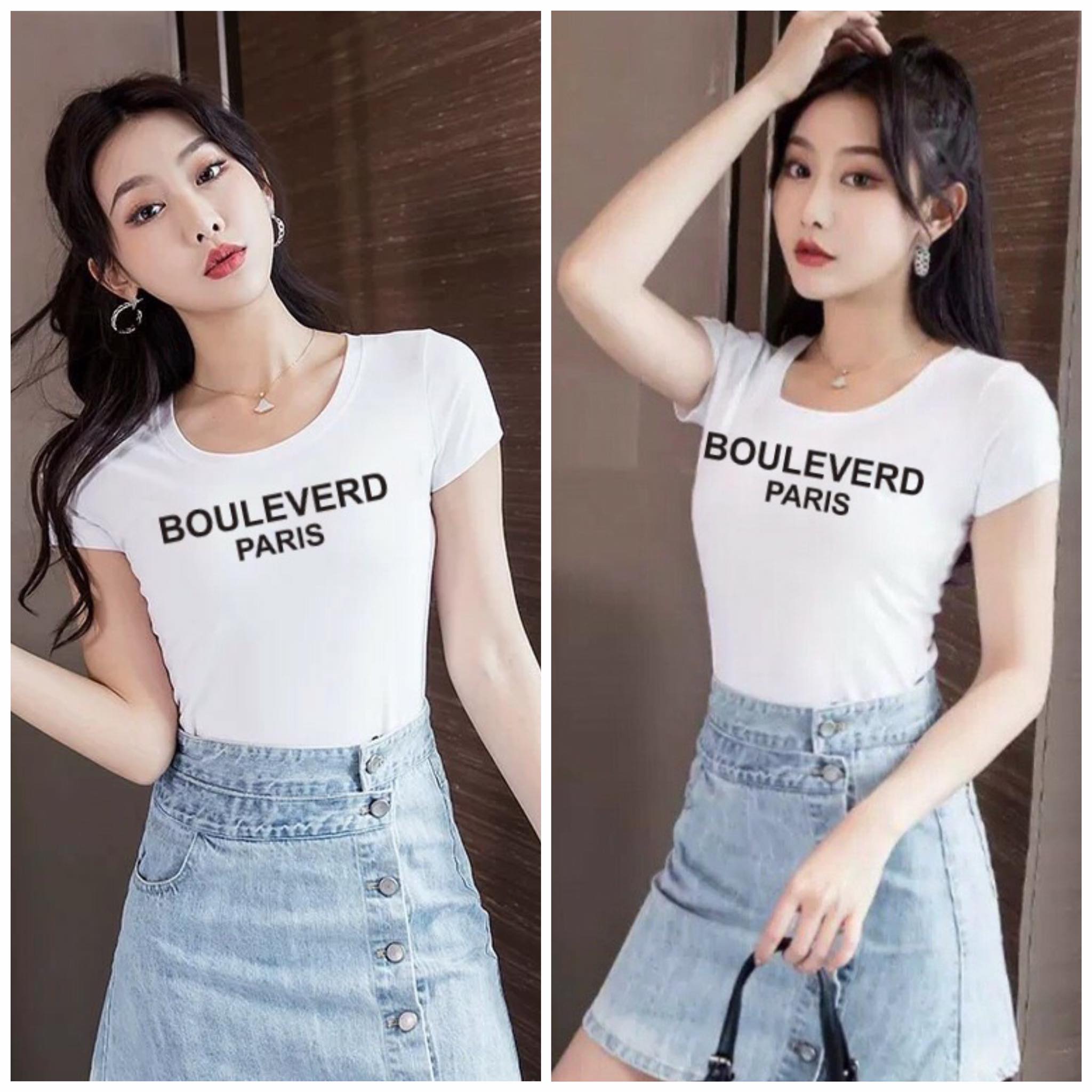 ✨Áo thun nữ MXM form ôm body in chữ Bouleverd trẻ trung mặc tôn dáng từ 40-52kg ( ANU023 )