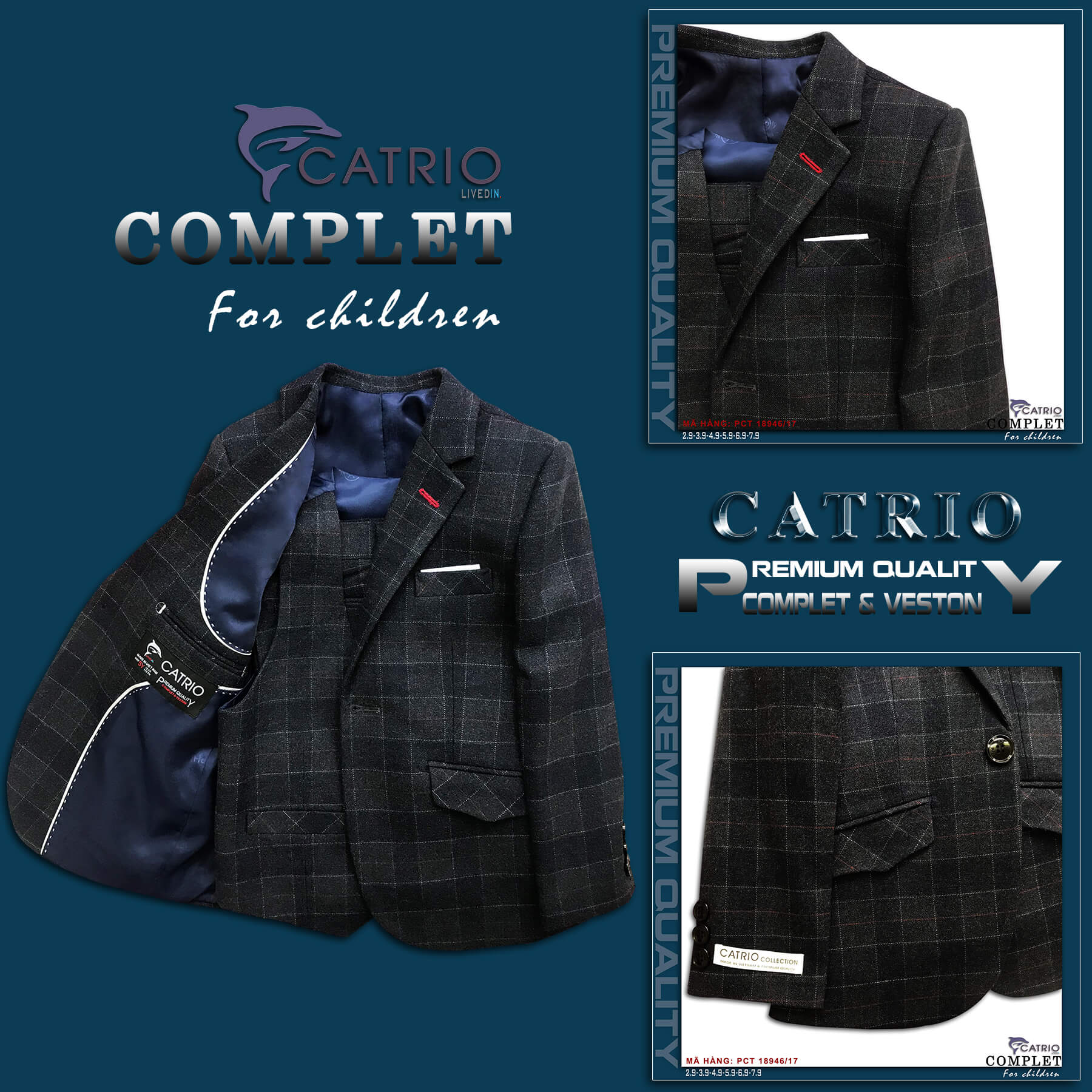 BỘ VEST BÉ TRAI CATRIO PCT E20 TỪ 2 TUỔI ĐẾN 7 TUỔI (11KG ĐẾN 27KG) THUỘC BST QUẦN ÁO COMPLET VESTON TRẺ EM CATRIO HÃY MUA HÀNG "THẬT" ĐỂ CẢ GIA ĐÌNH ĐƯỢC CẢM