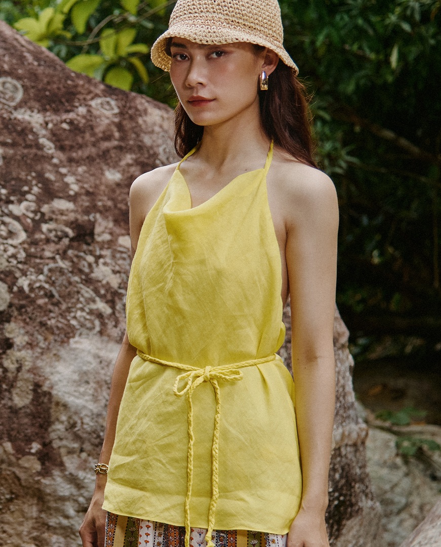 Kiểu dáng hở lưng gợi lên vẻ đẹp quyến rũ, bí ẩn. Yếm mang phong cách tự do, phóng khoáng, như nàng kim tước vàng anh gợi cảm.