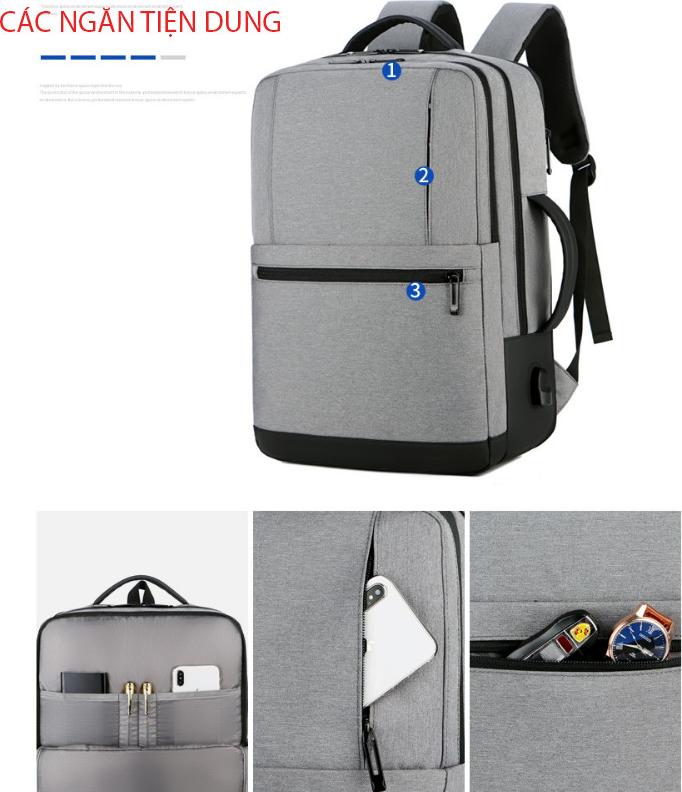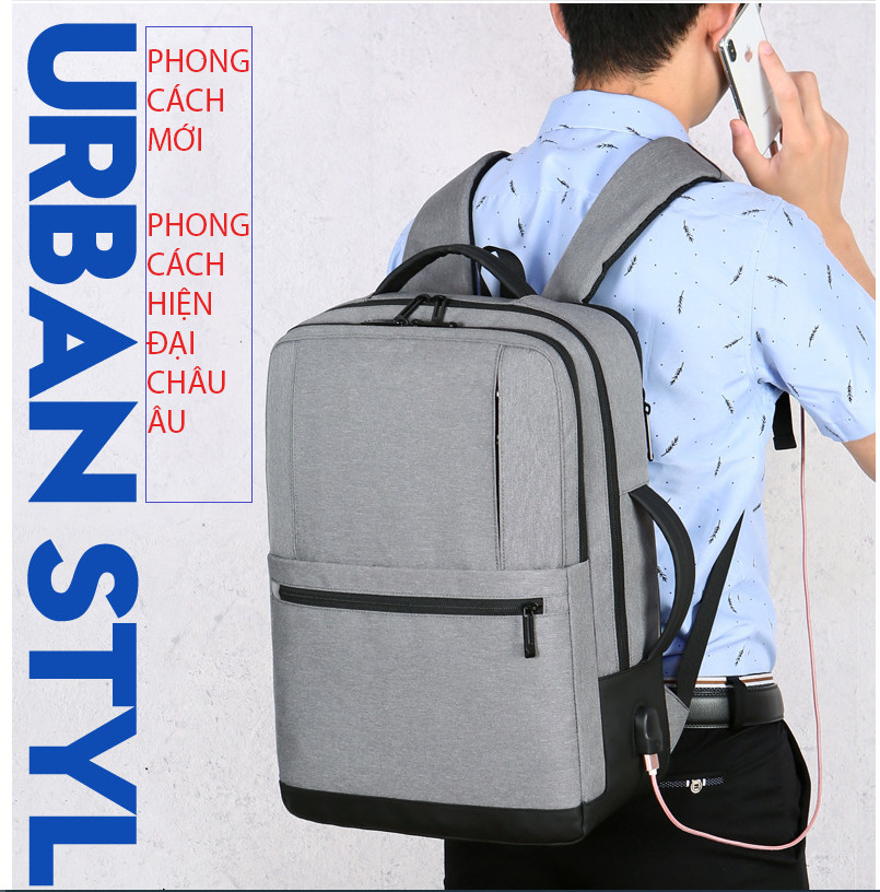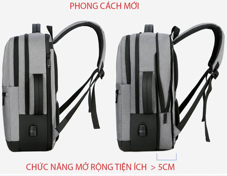 Balo du lịch chống nước BLU08 có cổng sạc USB, Balo nam đi học đẹp đựng laptop 15.6 inch