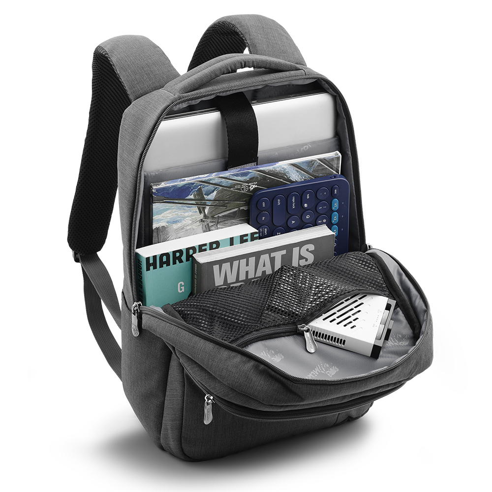 FEATURES - Business backpack with dedicated compartment to protect 15.6" laptop - Spacious U-shaped main compartment opening design increases luggage accessibility - Organized storage in the front compartment keeps essentials neatly organized - Expandable side