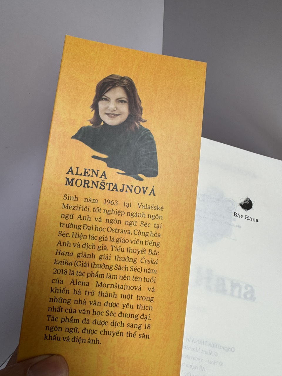 Alena Mornštajnová sinh năm 1963 tại Valašské Meziříčí, tốt nghiệp ngành ngôn ngữ Anh và ngôn ngữ Séc tại trường Đại học Ostrava, Cộng hòa Séc. Hiện tác giả là giáo viên tiếng Anh và dịch giả. Tiểu thuyết Bác Hana giành giải thưởng Česká kniha (Giải thưởng Sách Séc) năm 2018 là tác phẩm làm nên tên tuổi của Alena Mornštajnová và khiến bà trở thành một trong những nhà văn được yêu thích nhất của văn học Séc đương đại. Tác phẩm đã được dịch sang 18 ngôn ngữ, được chuyển thể sân khấu và điện ảnh.