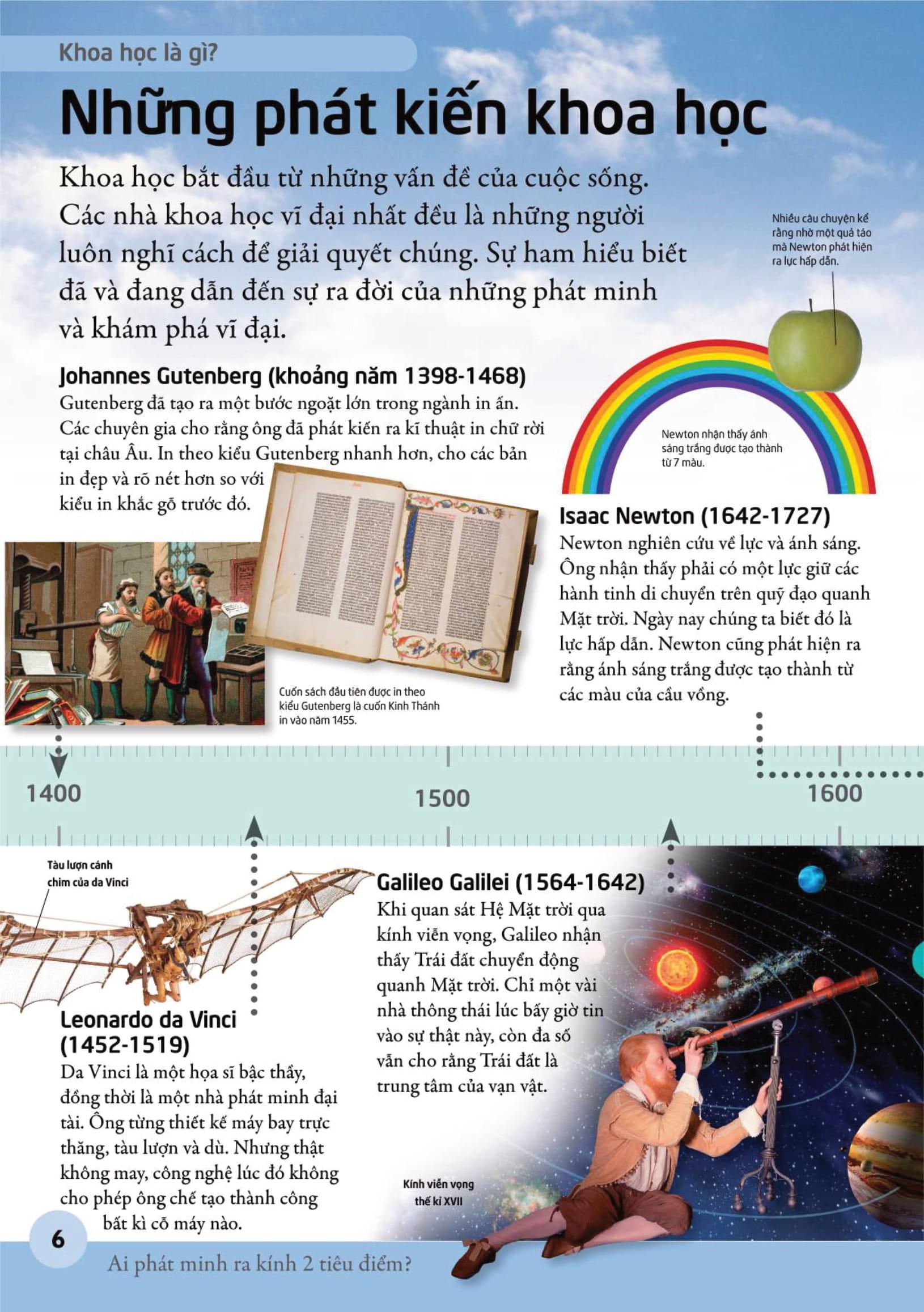 Với các hình minh họa trực quan sinh động, bắt mắt, cuốn sách cung cấp một lượng kiến thức phong phú, súc tích, dễ hiểu, cùng những câu hỏi vui, mẩu thông tin thú vị về khoa học. Em sẽ được tìm hiểu từng lĩnh vực mà khoa học nghiên cứu, từ sinh vật học, hóa học, vật lí tới thiên văn học. Bên cạnh đó, em có thể tìm trong cuốn sách các hướng dẫn và gợi ý giúp em thử làm nhà khoa học nhí nữa đấy.