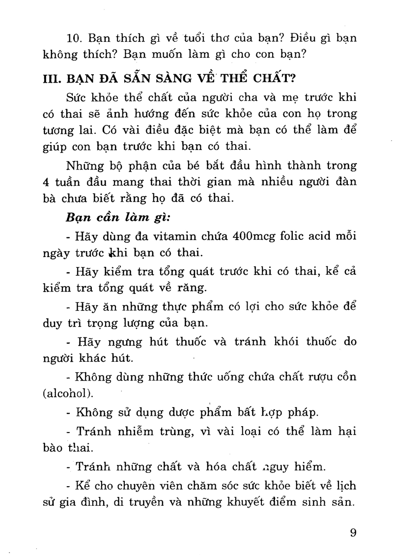 Bách khoa Tri Thức Thai Sản Tập 1 - Để Sinh Con Khỏe Mạnh & Thông Minh Mục lục sách: Chương I: Chuẩn bị trước khi mang thai 1. Những tri thức cơ bản về