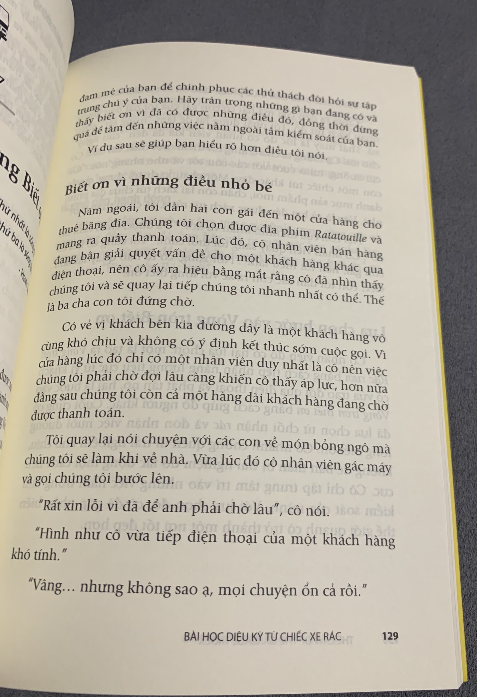“Có những người giống như “chiếc xe rác” vậy: họ chứa trong mình đầy “rác rưởi” - sự thất vọng, tức giận và chán nản. Và tất nhiên, họ phải tìm chỗ để trút bỏ mớ rác rưởi đó. Nếu thấy họ trút lên bạn thì bạn đừng đón nhận. Hãy mỉm cười, vẫy chào, chúc họ vui, rồi tiếp tục công việc của mình. Cứ tin tôi đi, rồi bạn sẽ thấy hạnh phúc hơn.”
