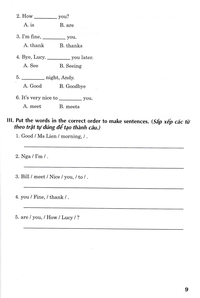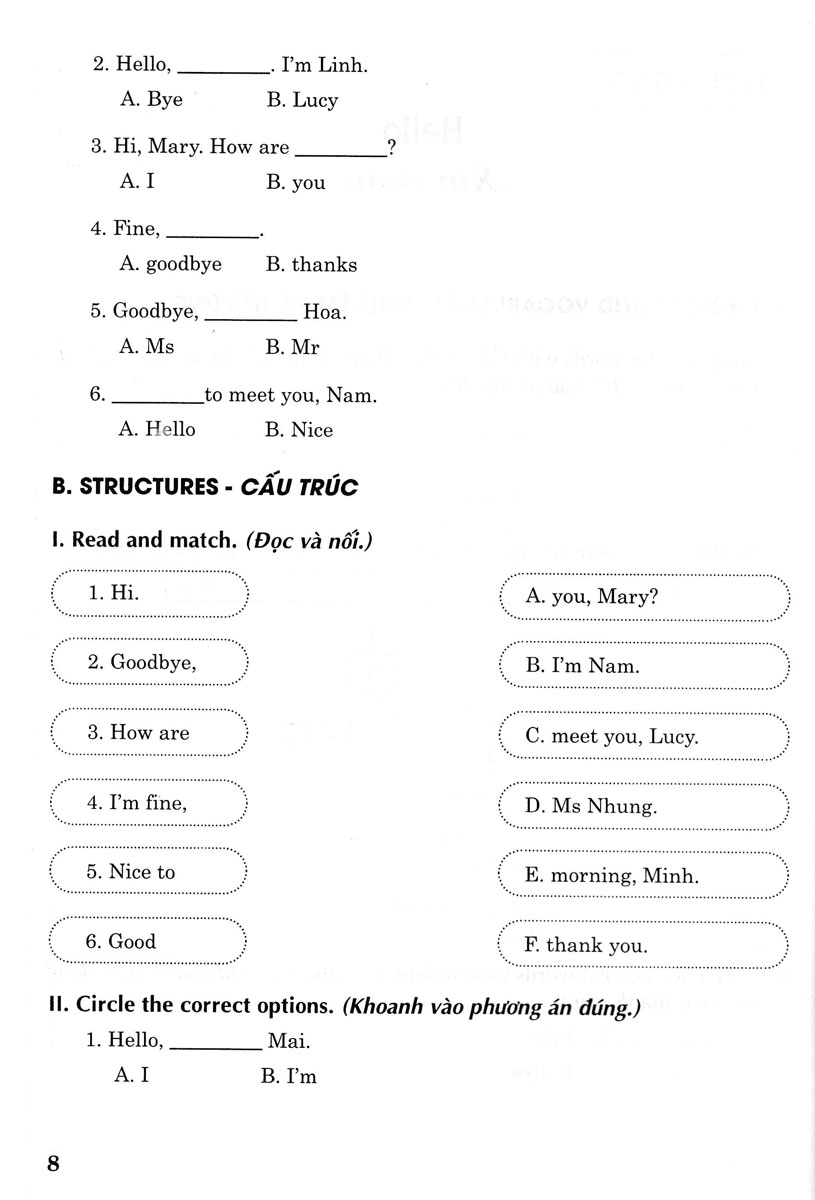 A. Phonics and Vocabulary: Các dạng bài tập trong phần này giúp các em làm quen với cách phát âm và ghi nhớ các từ vựng mới
