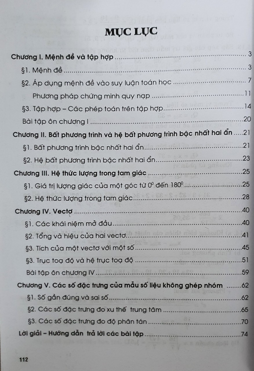 1. Nội dung sách Tự học Toán học lớp 10: Tập 1: - Chương 1: Mệnh đề và tập hợp (5 chủ đề) - Chương 2: Bất phương trình - Hệ bất phương trình (4