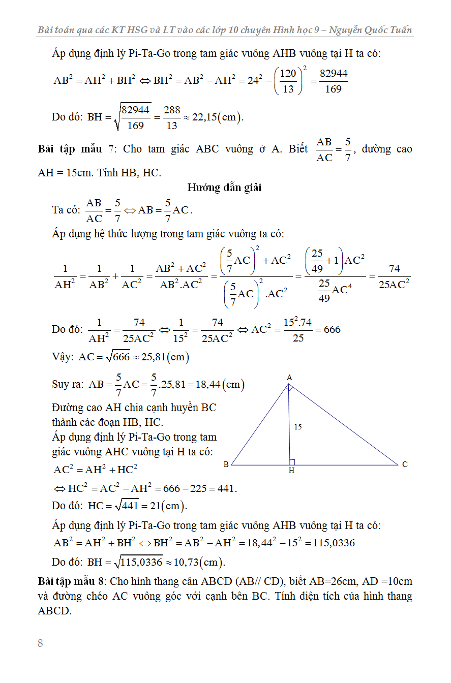 Chương I: Hệ thức lượng trong tam giác vuông