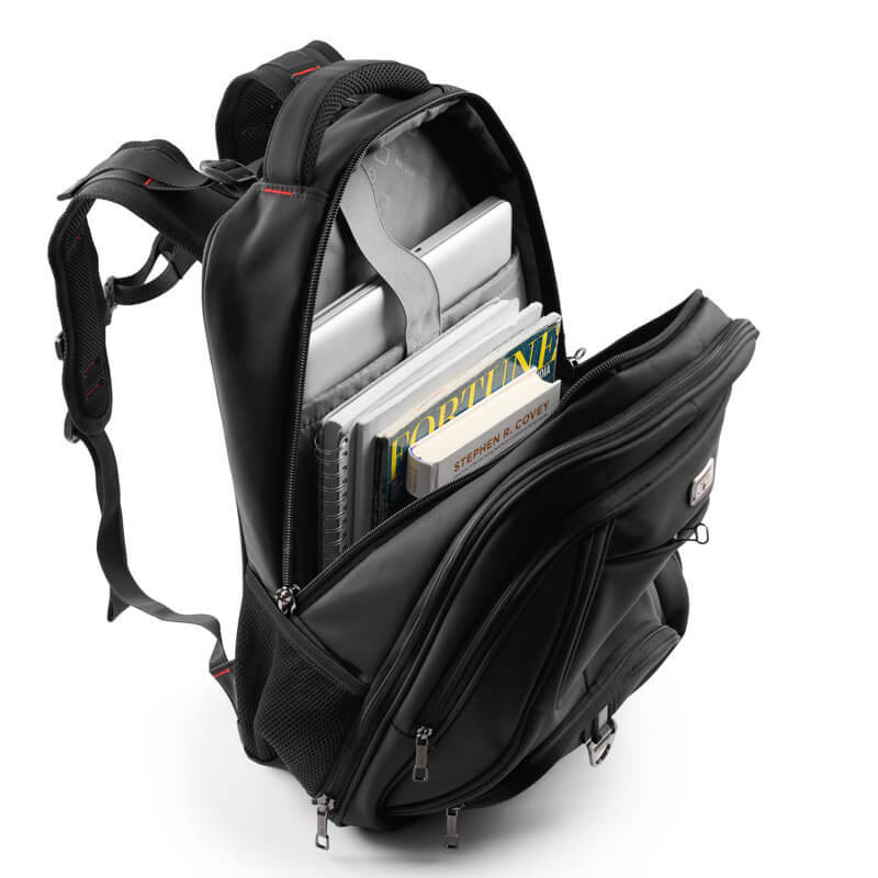 Ngăn chính balo được thiết kế rộng rãi, kèm theo ngăn chống sốc laptop 17 inch dày, có độ đàn hồi cao, tránh được các va đập mạnh. Ngoài ra, balo còn có các ngăn phụ giúp người sử dụng phân chia những vật dụng nhỏ như thẻ xe, thẻ ATM, chìa khóa, bút viết, sổ tay... tránh trường hợp thất lạc và dễ dàng tìm kiếm.