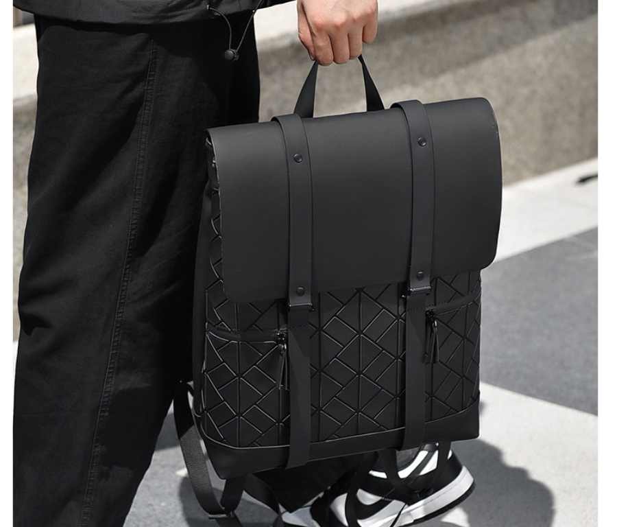 Chiếc Balo laptop nam nữ 15”, ba lô đi làm, đi học đựng máy tính 15inch ngăn trước khoá gài với thiết kế dáng đứng cùng chi tiết ngăn trước khoá gài phối da vân tạo