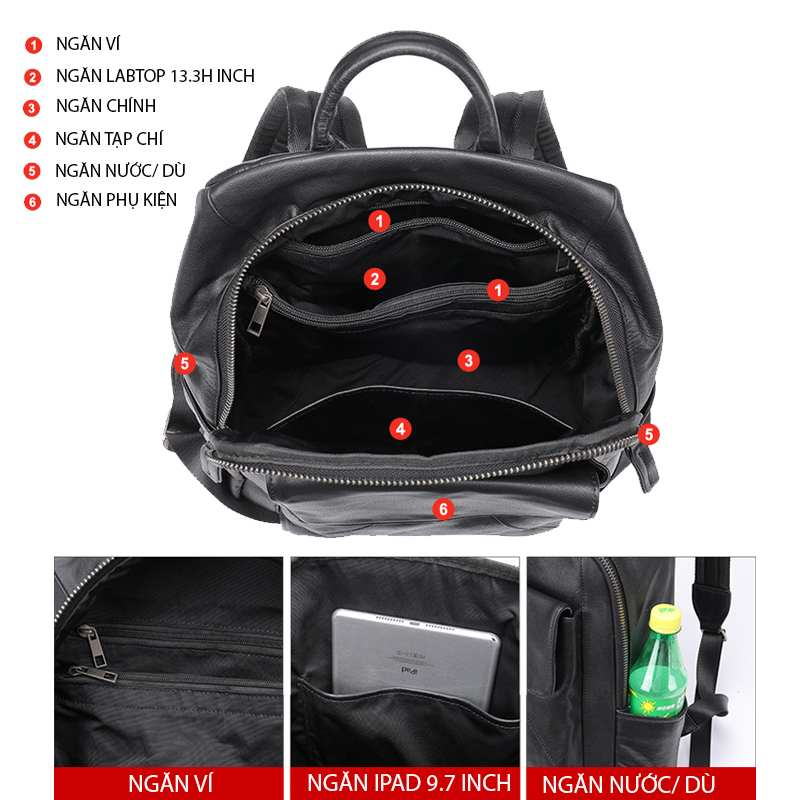 Kích thước : rộng 33cm X cao 46cm X dày 15cm Trọng lượng: 1.45 kg Màu sắc: Nâu, Nau sẫm, Đen Phương pháp sản xuất: thủ công Chất liệu : Da BÒ THẬT Chức năng: thoáng khí, chống mài mòn, dễ làm sáng, chống sốc thiết kế : phong cách trẻ trung ,sang trọng, đẳng cấp