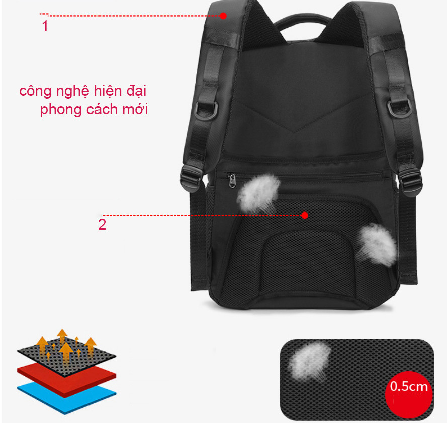 Phương pháp sản xuất: công nghệ cao Chất liệu : Vải oxfort được mã hóa SIÊU CHỐNG THẤM NƯỚC Chức năng: Không thấm nước, thoáng khí, chống mài mòn, làm sáng, chống sốc đặc biệt chống trộm cao cấp