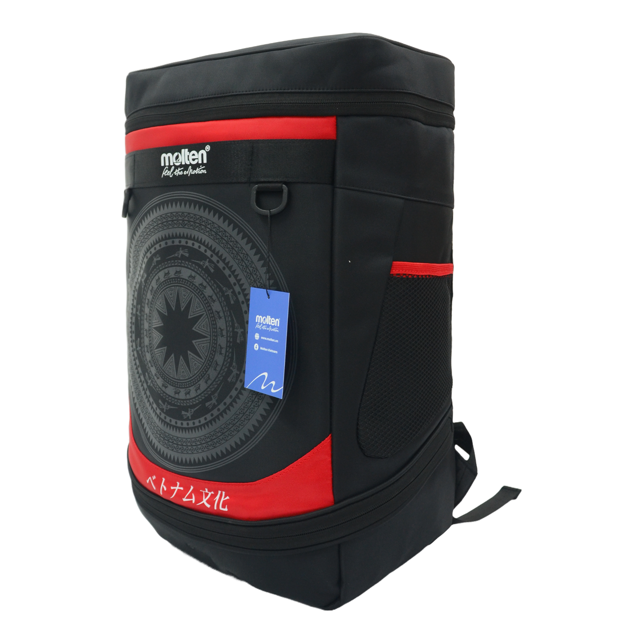 Mua tại TiktokBalo Thể thao 35L Molten Đỏ Chất liệu: 100% Polyester tráng chống nước 2 mặt Dung tích: 35l Kích thước: 32 x 19 x 50cm (rộng x dài x cao) Dây đeo vai điều chỉnh độ dài Phiên bản Văn hoá Việt Nam Cấu tạo: 6 ngăn