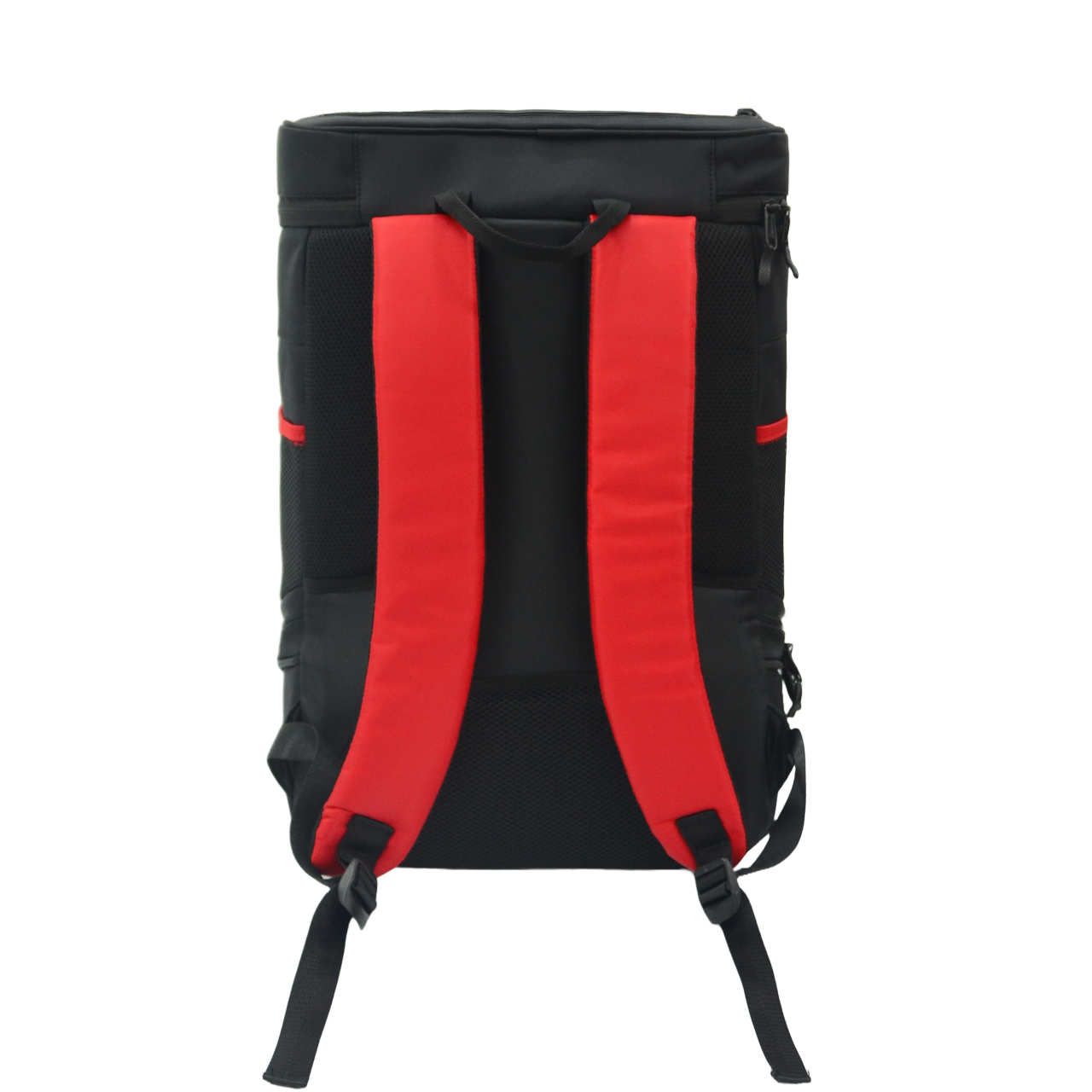 - Hai ngăn thun bên hông trái và phải cho chai nước, phụ kiện, thẻ xe, ... Đính kèm lưới thun đựng các loại bóng được cài treo mặt trước balo
