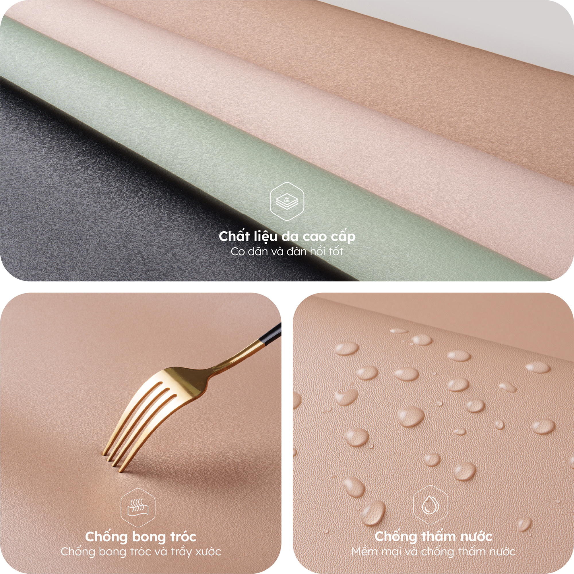 - Có thể vệ sinh bằng khăn khô hoặc các dung dịch vệ sinh dành riêng cho da