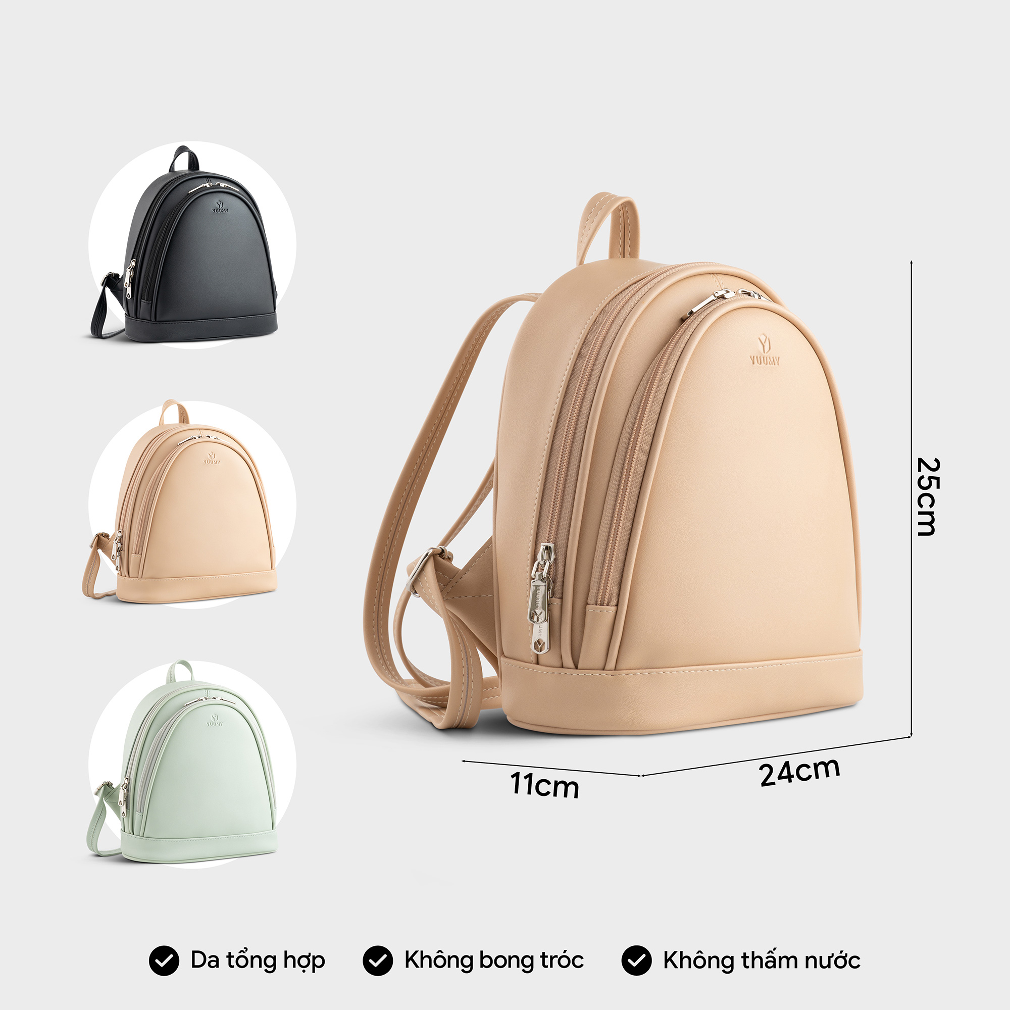 Balo da nữ Yuumy Seasand YBA99 với tone màu cơ bản theo phong cách basic giúp bạn dễ dàng phối hợp với nhiều kiểu trang phục khác nhau. Chiếc balo có kiểu dáng nhỏ gọn,
