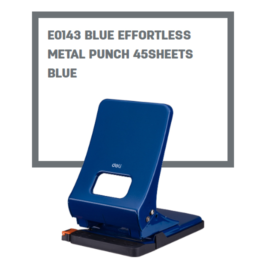 Bấm lỗ giấy vỏ kim loại Deli 143 45 tờ Đục lỗ giấy văn phòng Giao màu ngẫu nhiên là sản phẩm bấm lỗ giấy tiện dụng, có thể bấm nhiều tờ cùng lúc, với vỏ ngoài bằng kim loại có độ bền cao, chống gỉ sét, thời gian sử dụng lâu dài, thiết kế hiện đại, hiệu quả công việc cao.