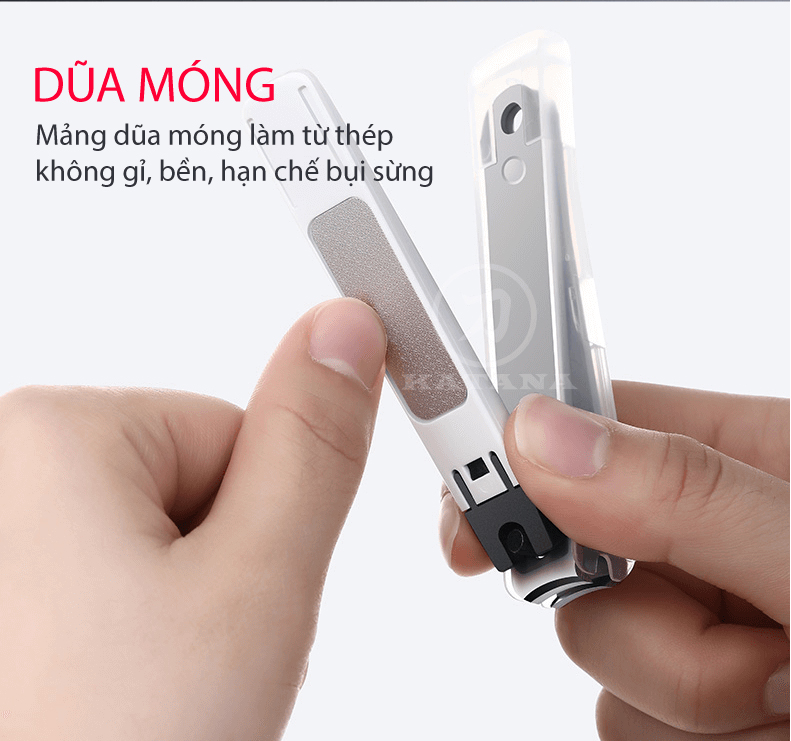 - Sản phẩm được trang bị hộp bao quanh, giúp đựng móng tay trong khi bấm móng