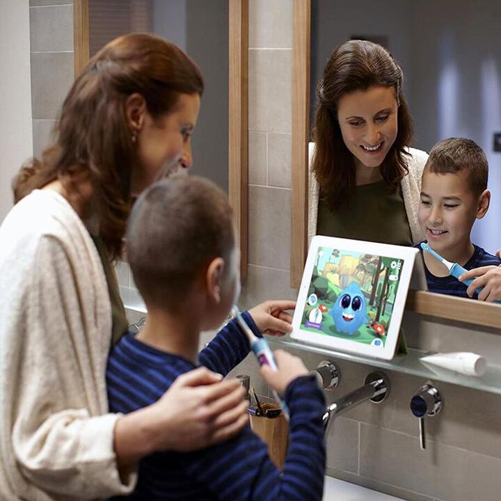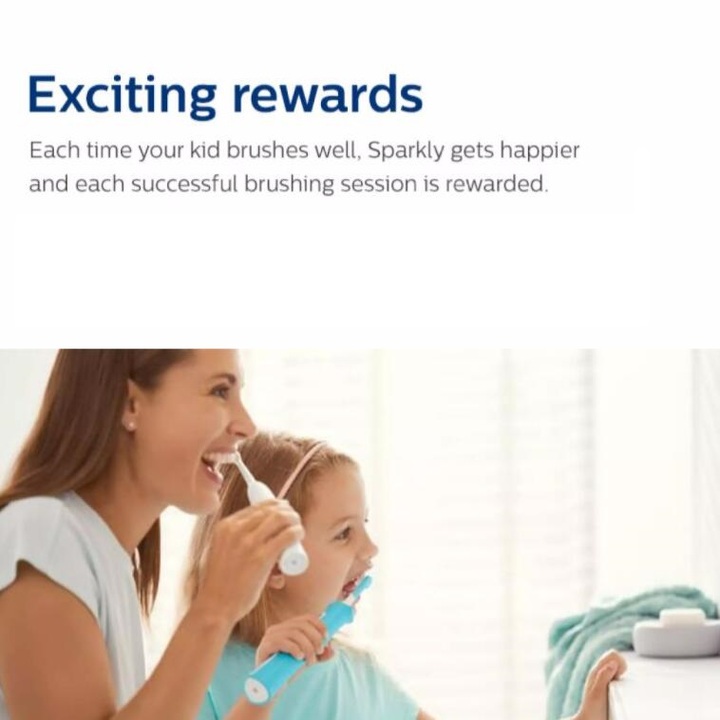 - Khi trẻ học đánh răng, công nghệ âm thanh của chúng tôi làm phần còn lại. Hành động năng động độc đáo của bàn chải đánh răng điện Philips Sonicare nhẹ nhàng và hiệu quả chạm sâu vào giữa răng và dọc theo đường viền nướu. Với hơn 500 nét mỗi giây, sức mạnh làm sạch âm thanh giúp bù đắp cho việc phát triển các kỹ thuật khi trẻ phát triển tốt hơn khi đánh răng. Công nghệ này giúp bàn chải đánh răng Philips Sonicare For Kids hiệu quả hơn tới 75% so với bàn chải đánh răng thủ công, giúp kiểm tra thành công hơn. Nhãn dán hoán đổi cho nhau để tạo hứng thú cho trẻ - Với tám thiết kế có thể hoán đổi cho nhau bên trong mỗi hộp bàn chải đánh răng, trẻ em có thể cho bàn chải của mình một diện mạo mới bao nhiêu lần tùy ý. Kết hợp với cơ hội tùy chỉnh giao diện của nhân vật ứng dụng của họ, trải nghiệm Philips Sonicare For Kids là tất cả về việc làm cho việc chăm sóc răng miệng hiệu quả trở nên hấp dẫn và vui vẻ mọi lúc.