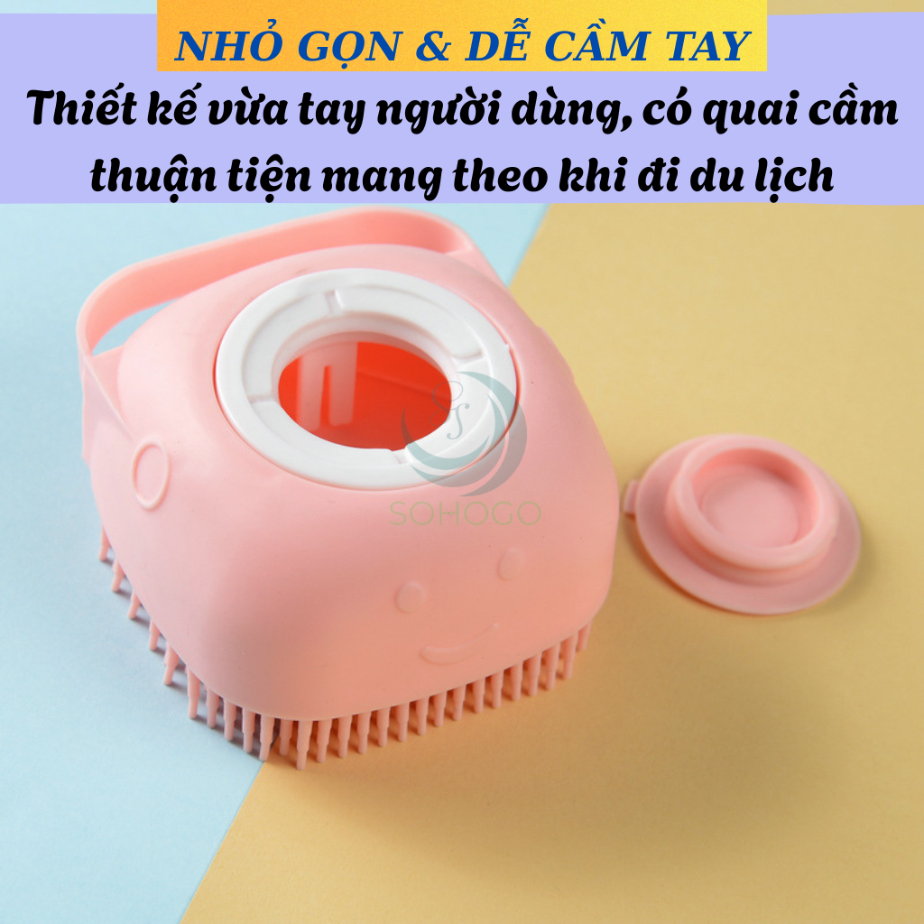 Mua tại TiktokMÔ TẢ CHI TIẾT SẢN PHẨM Bàn chải tắm silicon thông minh là sản phẩm kết hợp giữa chức năng làm sạch, massage và tạo bọt một cách tiện lợi. Thiết kế hình hộp nhỏ gọn, dễ thương, phù hợp với mọi đối tượng sử dụng từ trẻ nhỏ đến người lớn. Đặc biệt, bên trong có ngăn chứa sữa tắm/xà phòng, chỉ cần bóp nhẹ là bọt tự động chảy ra đầu gai silicon, giúp tiết kiệm thời gian và công sức khi tắm. ƯU ĐIỂM NỔI BẬT