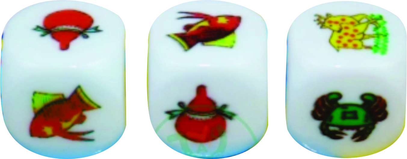 Bộ Đồ Chơi Giải Trí Lắc Bầu Cua Cá Cọp Bằng Giấy Hạt Xúc Xắc Bằng Nhựa 2cm: Đồ chơi lắc bầu cua cá cọp xúc xắc bằng NHỰA size 2 cm (Lắc bầu cua