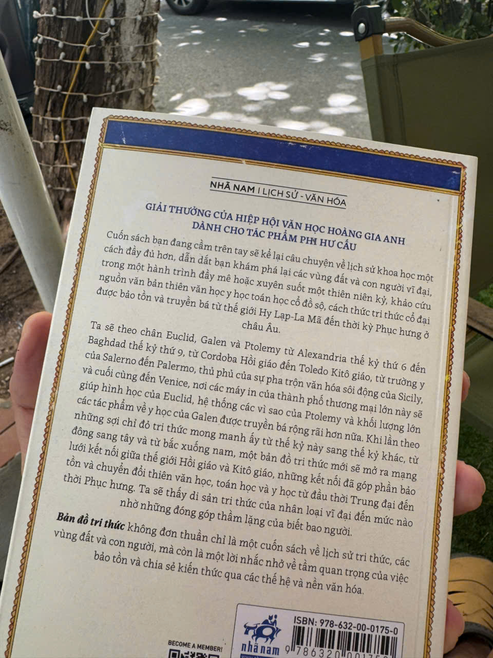 Cuốn sách bạn đang cầm trên tay sẽ kể lại câu chuyện về lịch sử khoa học một cách đầy đủ hơn, dẫn dắt bạn khám phá lại các vùng đất và con người vĩ đại, trong một hành trình đầy mê hoặc xuyên suốt một thiên niên kỷ, khảo cứu nguồn gốc văn bẳn thiên văn học y học toán học cổ đồ sộ, cách thức tri thức cổ đại được bảo tồn và truyền bá từ thế giới Hy Lạp-La Mã đến thời kỳ Phục Hưng ở châu Âu. Ta sẽ theo chân Euclid, Galen và Ptolemy từ Alexandria thé kỷ thứ 6 đến Baghdad thế kỷ thứ 9, từ Cordoba Hồi giáo đến Toledo Kito giáo, từ trường y của Salerno đến Palermo, thủ phủ của sự pha trộn văn hóa sôi động của Sicily, và cuối cùng đến Venice, nơi các máy in của thành ơhoos thương mại lớn này sẽ giúp hình học của Euclid, hệ thống các vì sao của Prolemy và khối lượng lớn các tác phẩm về y học của Galen được truyền bá rộng rãi hơn nữa. Khi lần theo những sợi chỉ đỏ tri thức mong manh ấy từ thế kỷ này sang thế kỷ khác, từ đông sang tây và từ bắc xuống nam, một bản đồ tri thức mới sẽ mở ra mạng lưới két nối giữa thế giới Hồi giáo và Kito giáo, những kết nối đã góp phần bảo tồn và chuyển đổi thiên văn học, toán học và y học từ đầu thời Trung đại đến thời Phục hung. Ta sẽ thấy di sản tri thức của nhân loại vĩ đại đến mức nào nhờ những đóng góp thầm lặng của biết bao người. Bản đồ tri thức không đơn thuần chỉ là một cuốn sách về lịch sử tri thức, các vùng đất và con người, mà còn là một lời nhắc nhở về tầm quan trọng của việc bảo tồn và chia sẻ kiên thức qua các thế hệ và nền văn hóa.