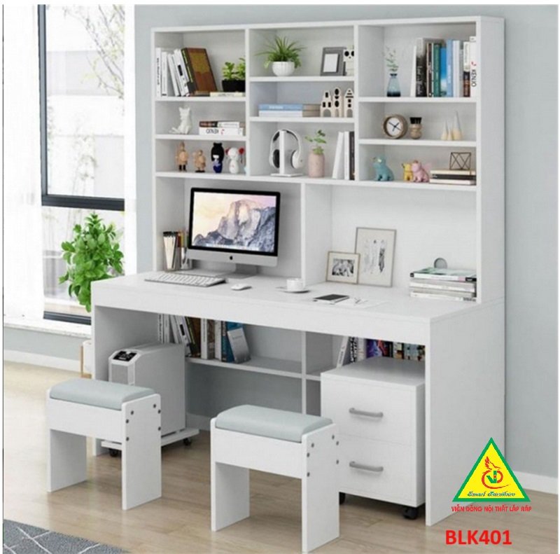 ✨Bàn làm việc, bàn học liền kệ gỗ MDF BLK401 - Nội thất lắp ráp Viễn Đông Adv