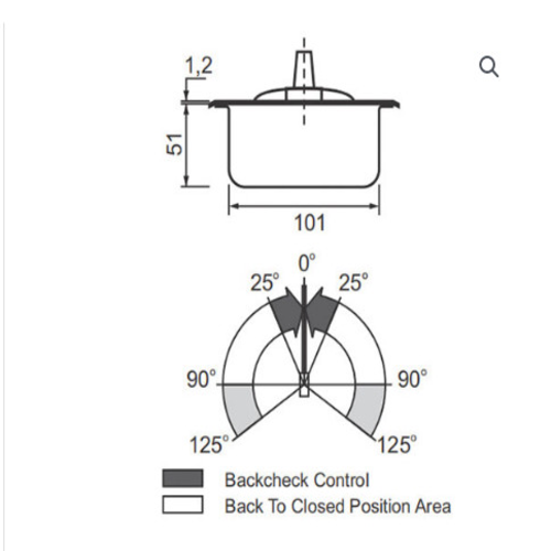 - Mở 2 chiều, tự động đóng khi góc <90o