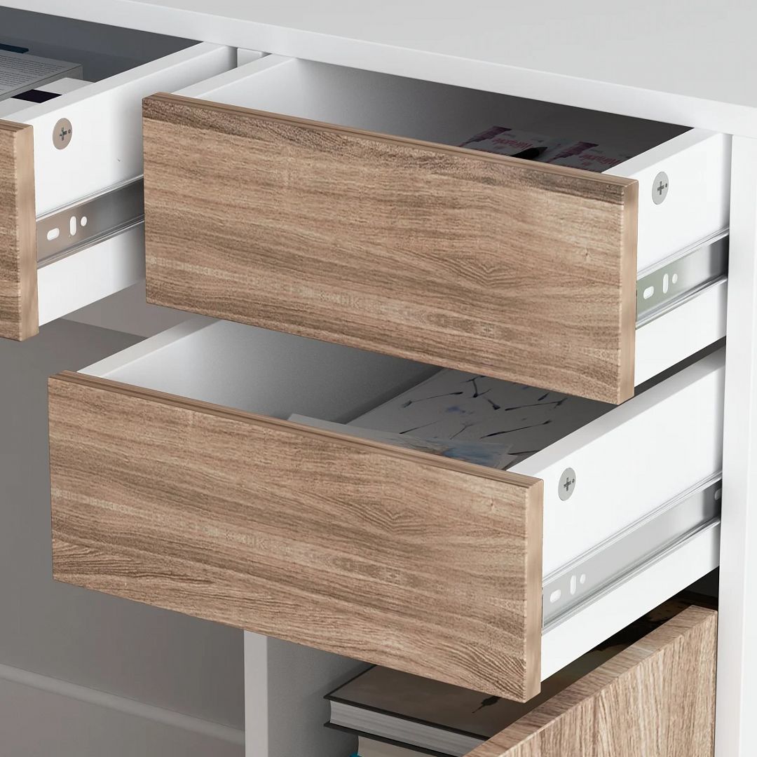 Mang đậm phong cách nội thất đơn giản, bàn làm việc gỗ SMLIFE Dakoon là một sự bổ sung hoàn hảo cho phòng làm việc, phòng đọc sách của bạn. Bàn làm việc Dakoon được thiết kế với nhiều tầng kệ và ngăn kéo mang đến nhiều không gian giúp bạn tổ chức sách vở và các vật dụng trang trí thoải mái. Sản phẩm là một giải pháp phù hợp cho những văn phòng hoặc căn hộ diện tích nhỏ. Sử dụng vật liệu ván ép công nghiệp MDF chống ẩm phủ Melamine cao cấp giúp bàn làm việc, bàn học gỗ SMLIFE có độ bền cao, chống trầy và chống ẩm rất tốt. Bạn có thể tự lắp đặt sản phẩm dễ dàng với các phụ kiện và hướng dẫn đi kèm.