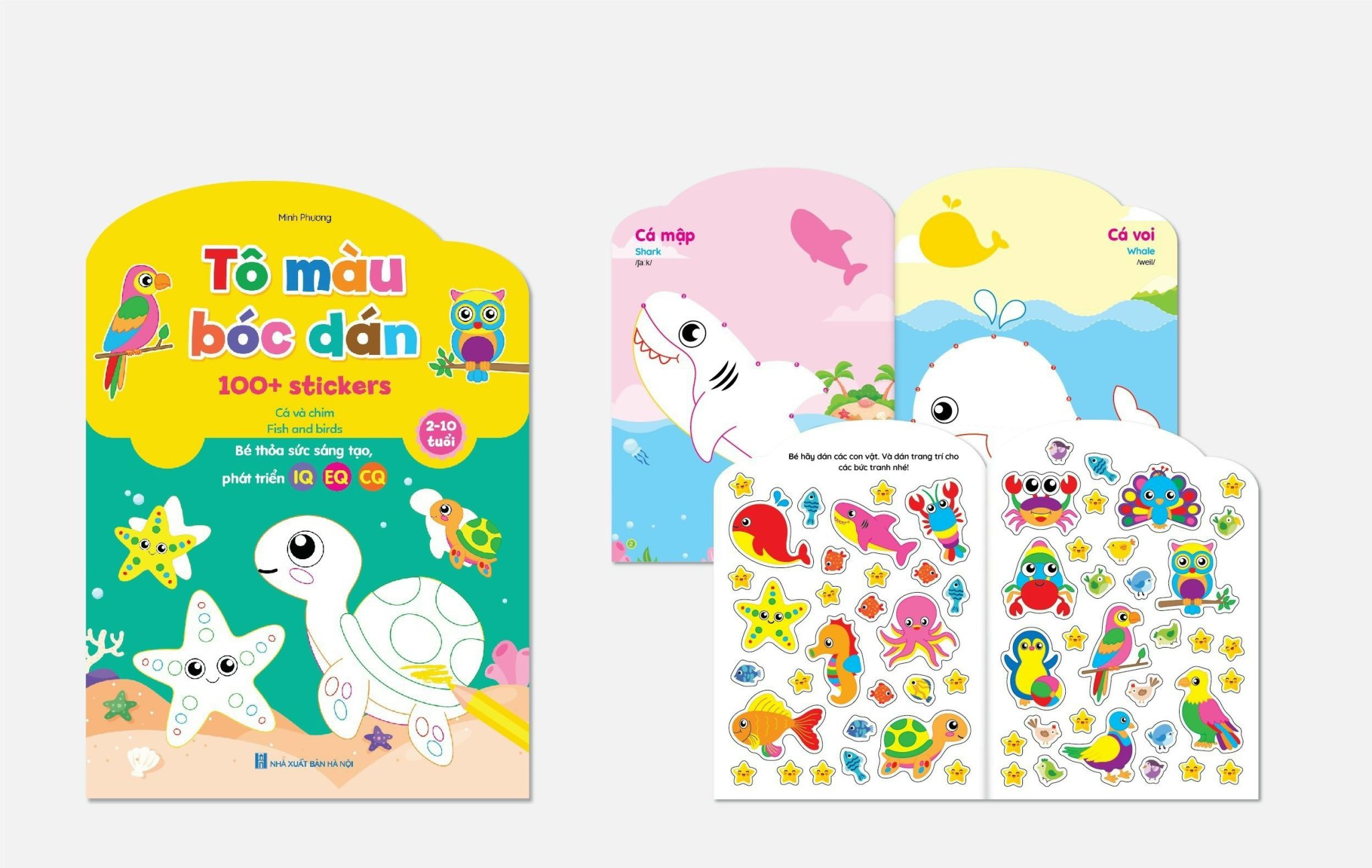 Mỗi quyển gồm 16 trang + 2 tờ hình dán sticker khổ to 19x26.5 cm.
