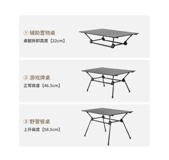cắm trại Blackdog BD-ZZ003 có thể tùy chỉnh 3 mức chiều cao vô cùng tiện lợi và đa năng, sử dụng trong nhiều trường hợp khác nhau, hoặc tháo phần chân bàn để có một chiếc