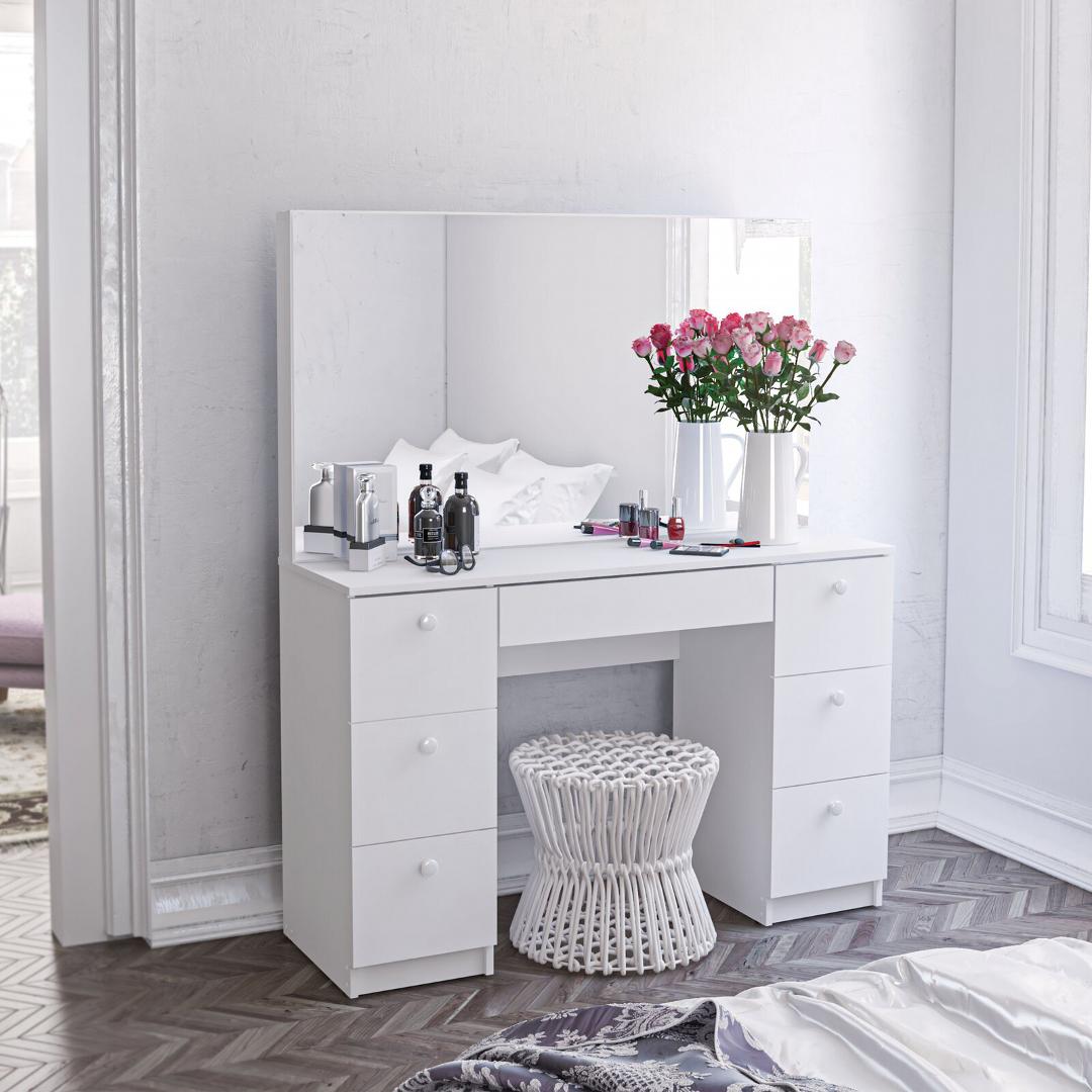 ***Sản phẩm chỉ bao gồm 1 bàn trang điểm và 1 ghế ngồi, không kèm các vật trang trí*** - Sản phẩm thân thiện với môi trường - Sản phẩm đạt tiêu Chuẩn xuất khẩu,