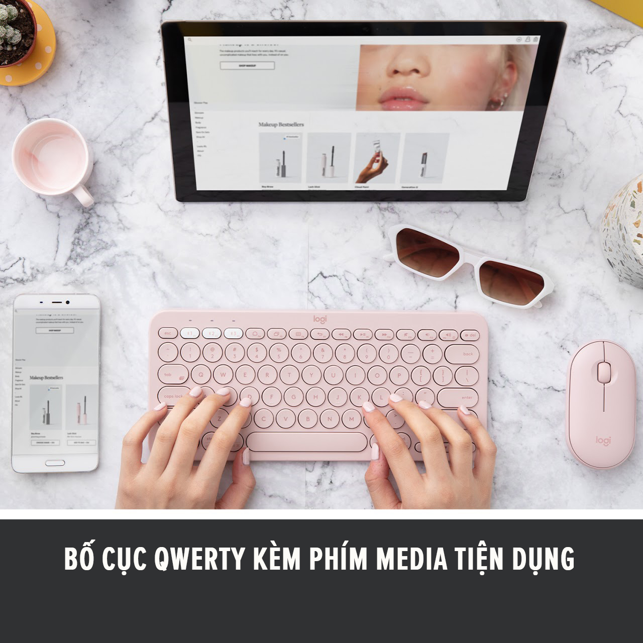 Công nghệ Bluetooth không dây giúp bạn có thể kết nối với các thiết bị nhanh chóng và ổn định .Công nghệ không dây giúp người sử dụng thoải mái trong việc di chuyển cũng như hỗ trợ các chức năng giảng dạy, học tập và làm việc. Ngoài ra, bàn phím còn có thể kết nối dễ dàng với 3 thiết bị cùng một lúc thông qua nút chuyển đổi nhanh "Easy-Switch" ở góc trái trên bàn phím.